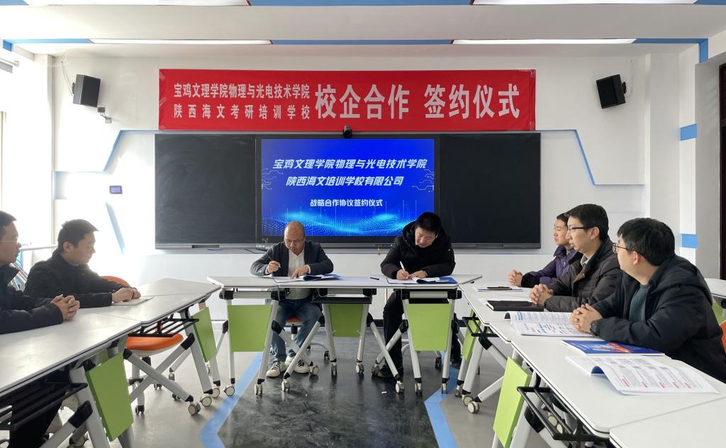 12月7日上午,suncitygroup太阳集团与万学教育陕西海文培训公司有限公司在石鼓校区教学主楼201会议室举行了校企合作协议签约仪式。公司党委书记邓茹、经理钱郁、副经理刘飞、周新淳出席仪式。
